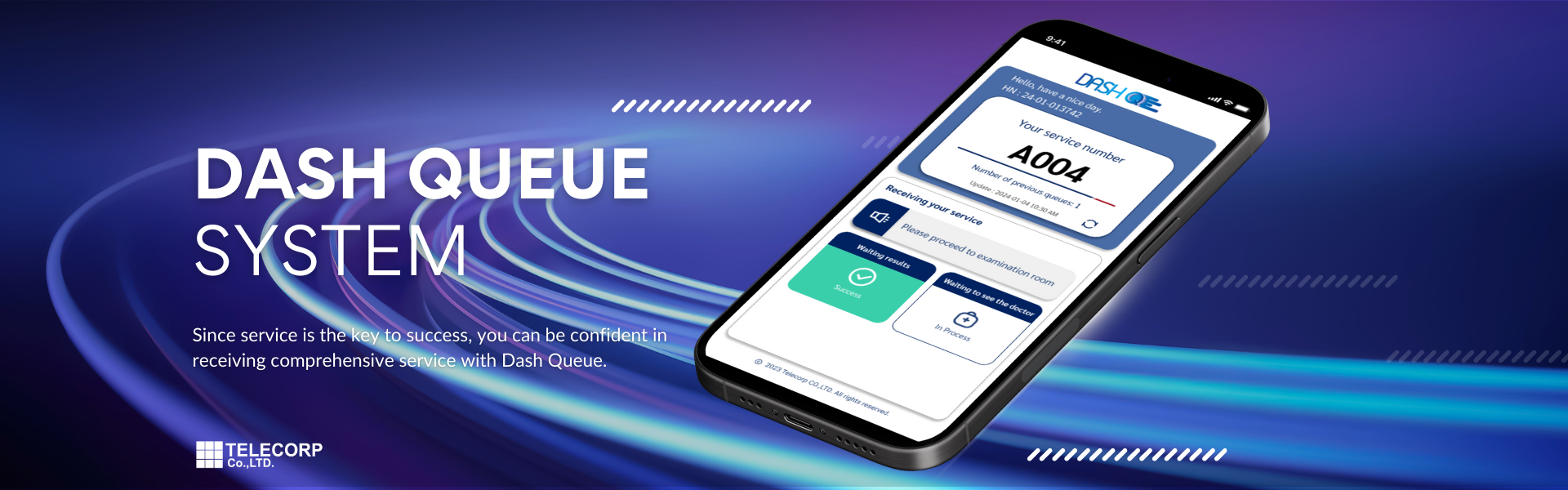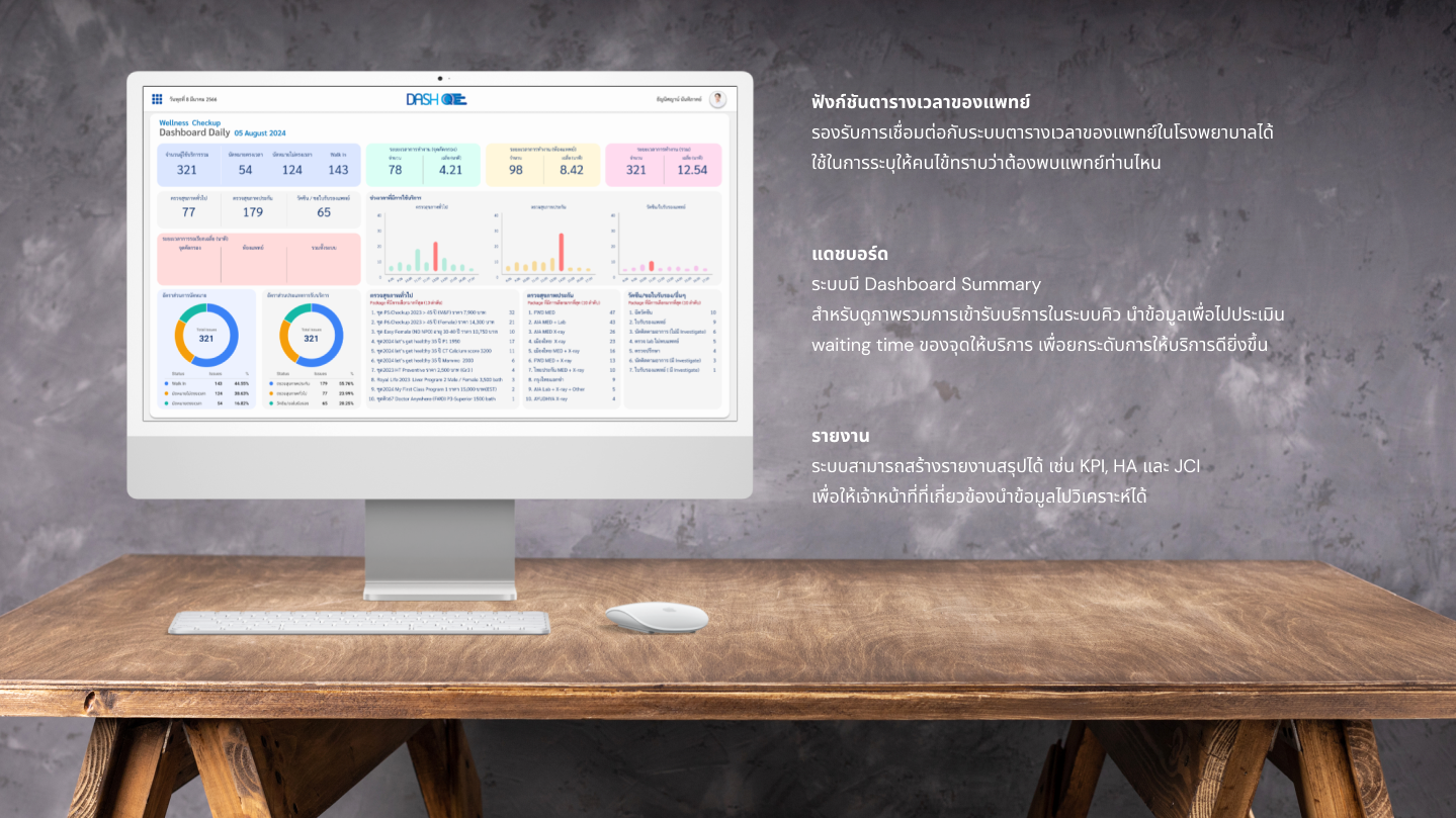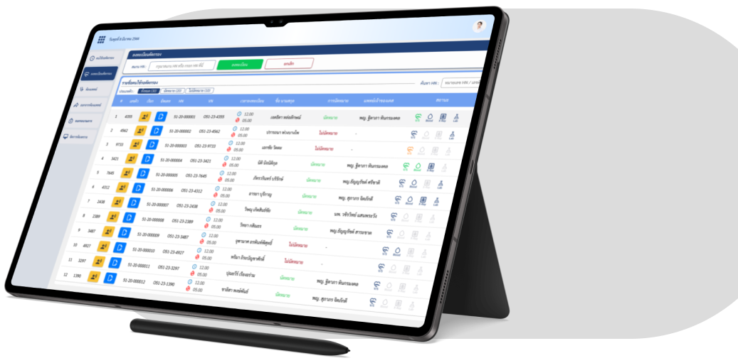 ระบบการจัดการคิวที่ใช้งานง่าย ซึ่งทำให้กระบวนการทั้งหมดเป็นเรื่องง่าย ตั้งแต่การลงทะเบียน การโอนย้ายระหว่างแผนก การแสดงสถานะของแพทย์ การชำระเงิน ไปจนถึงการจ่ายยา ช่วยลดเวลาในการรอคอยและลดปัญหาต่าง ๆ